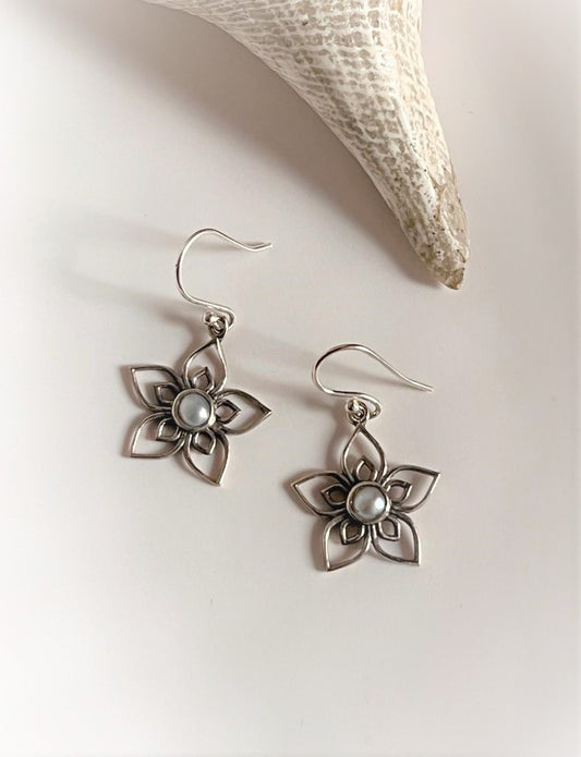 Fresh Water Pearl Flower Hook 925 Sterling Silver Earrings