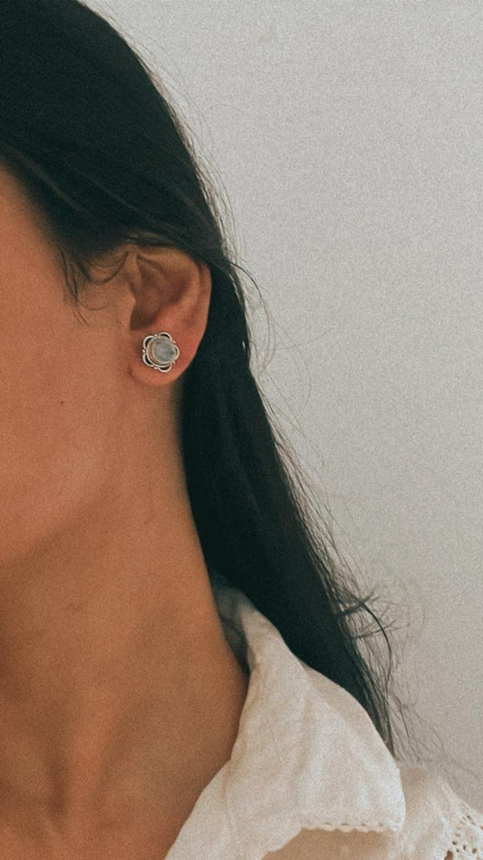 Moonstone Flower Studs 925 Sterling Silver Earrings