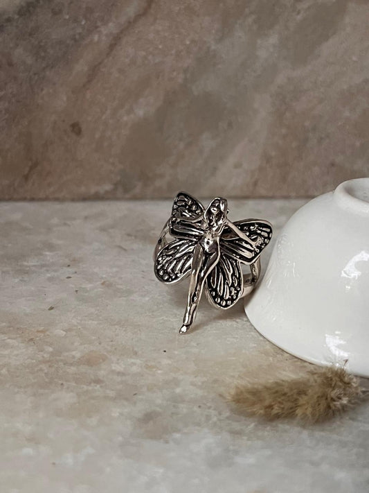 Boho Butterfly Angel 925 Sterling Silver Adjustable Ring