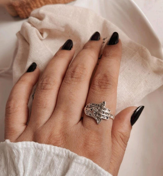 925 Sterling Silver Hamsa Boho Ring