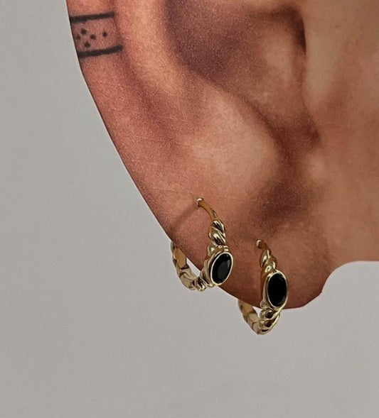 Gold Vermeil Black Onyx Croissant Huggies/ Hoops 925 Sterling Silver Earrings