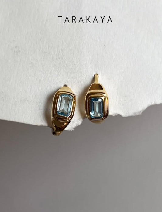 Gold Vermeil Blue Topaz Huggies/ Hoops 925 Sterling Silver Earrings