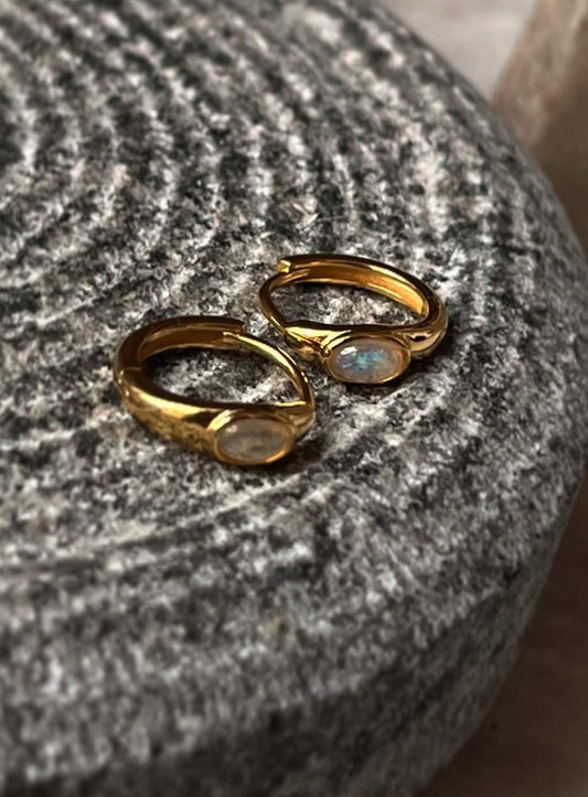 Gold Vermeil Natural Ethiopian Opal Oval Huggies/ Hoops 925 Sterling Silver Earrings