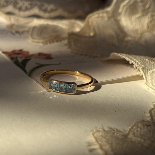 Gold Vermeil Blue Topaz 3 Stone Pretty Band 925 Sterling Silver Ring