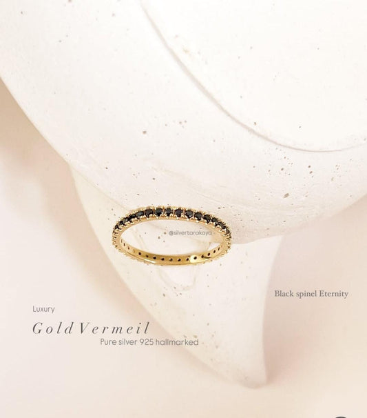 Gold Vermeil Black Spinel Eternity Stack Band 925 Sterling Silver Ring