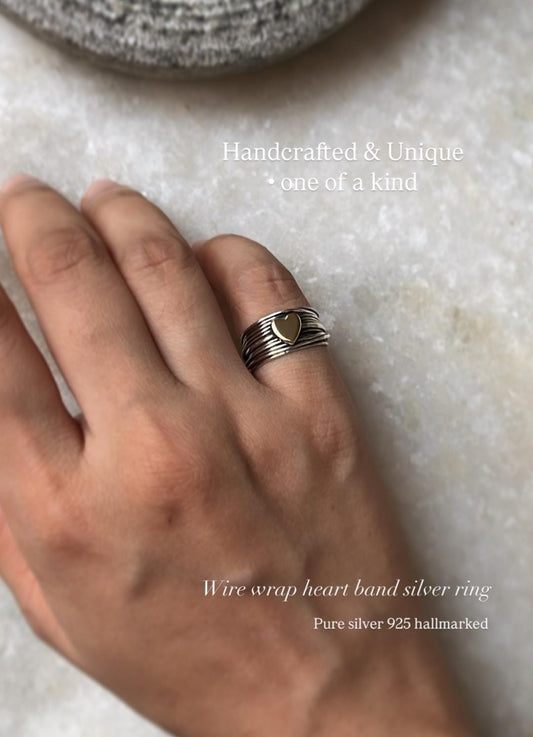Wire Wrap Heart Handcrafted Band 925 Sterling Silver Ring