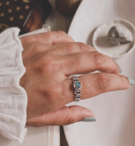 925 Sterling Silver Minimal Dainty Moonstone Moon Phases Ring