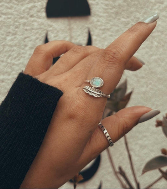 925 Sterling Silver Moonstone Feather Adjustable Ring