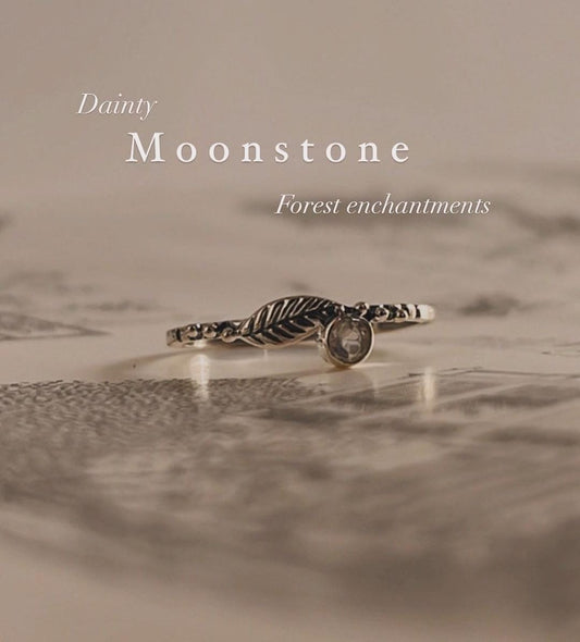 925 Sterling Silver Moonstone Dainty Forest Ring