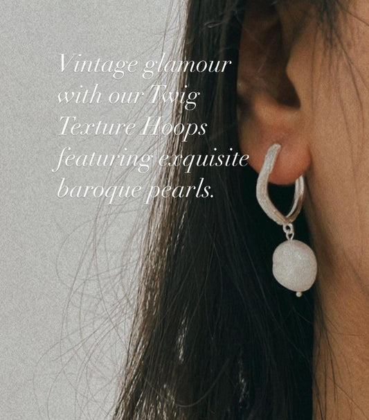 925 Sterling Silver Twig Textured Baroque Pearl Half hoops Earrings