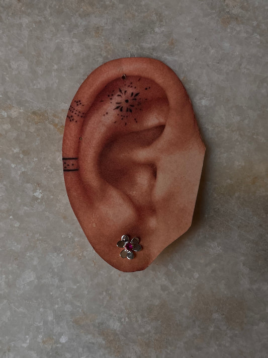 Ruby Lab Grown Flower 925 Sterling Silver Studs