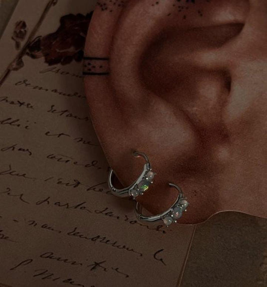 Silver Natural Ethiopian Opal Huggies/ Hoops 925 Sterling Silver Earrings
