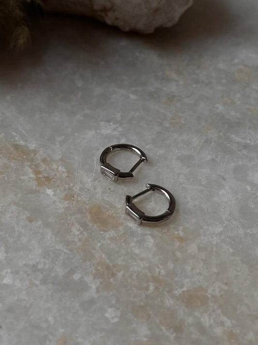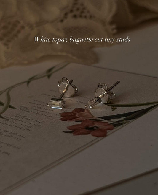 White Topaz Baguette Cut Tiny 925 Sterling Silver Studs
