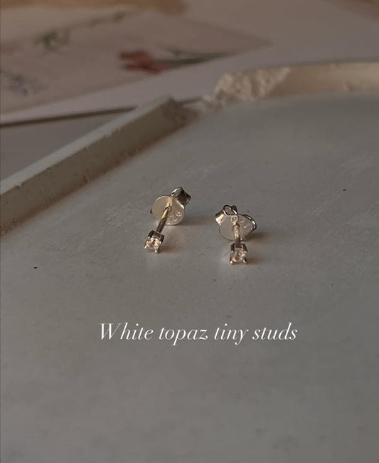 White Topaz Minimal Tiny Studs 925 Sterling Silver Earrings