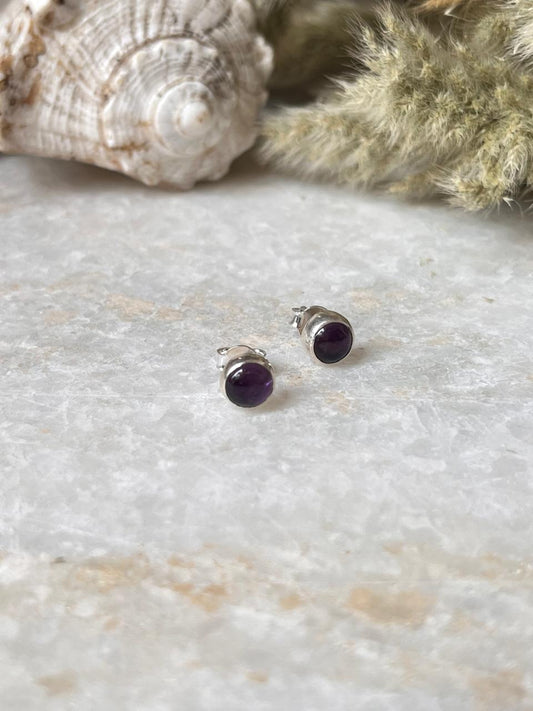 Amethyst Plain Round Studs 925 Sterling Silver Earrings