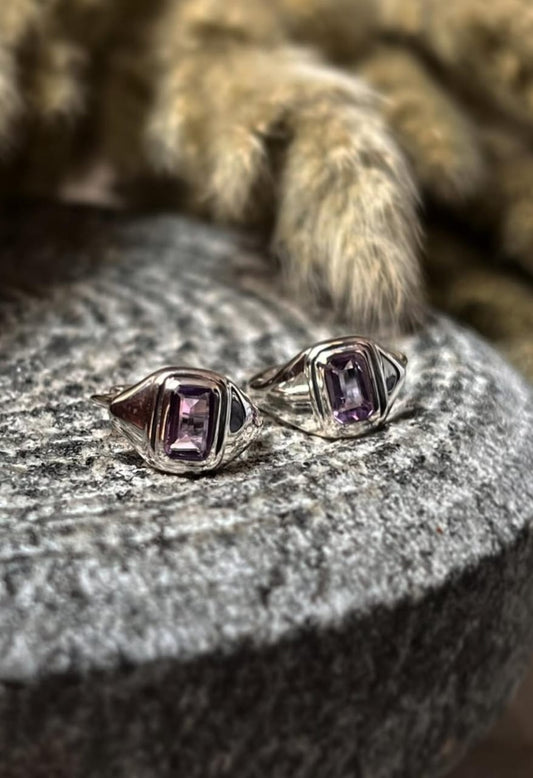 Silver Amethyst Huggies/ Hoops 925 Sterling Silver Earrings