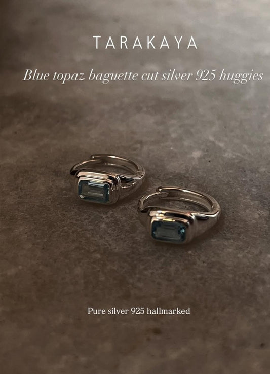 Blue Topaz Huggies/ Hoops 925 Sterling Silver Earrings
