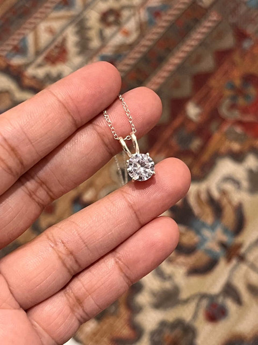 Small CZ Round Solitaire With Chain 925 Sterling Silver Necklace