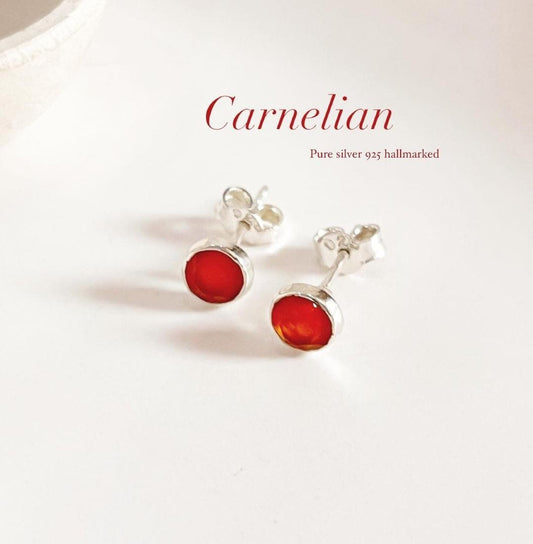 Carnelian Tiny Studs 4MM 925 Sterling Silver Earrings