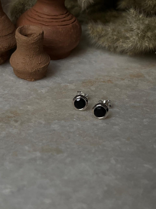 Black Spinel Round Tiny 925 Sterling Silver Studs