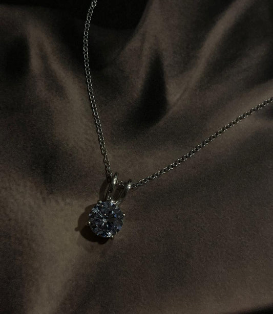 Plain White Cz Round Solitaire With Chain 925 Sterling Silver Necklace