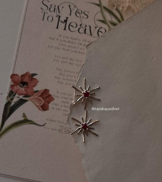 Lab Grown Ruby Star Burst Studs 925 Sterling Silver Earrings