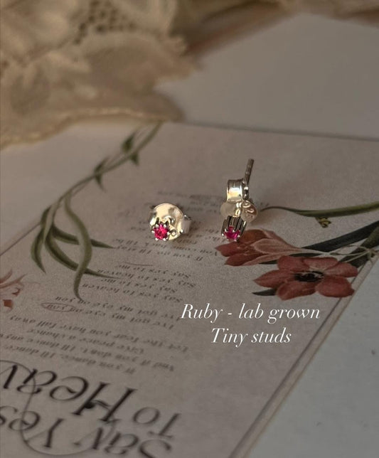 Lab Grown Ruby Minimal 925 Sterling Silver Tiny Studs