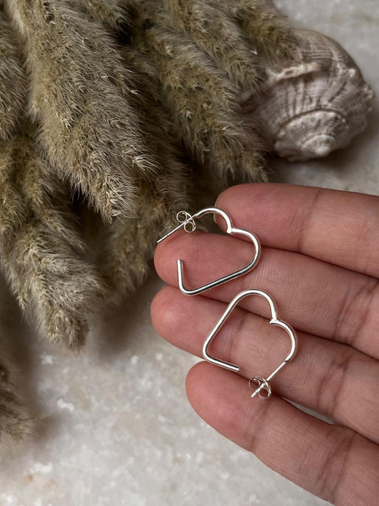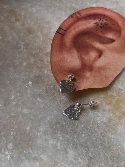 Pretty Hammered Hearts Charm 925 Sterling Silver Studs
