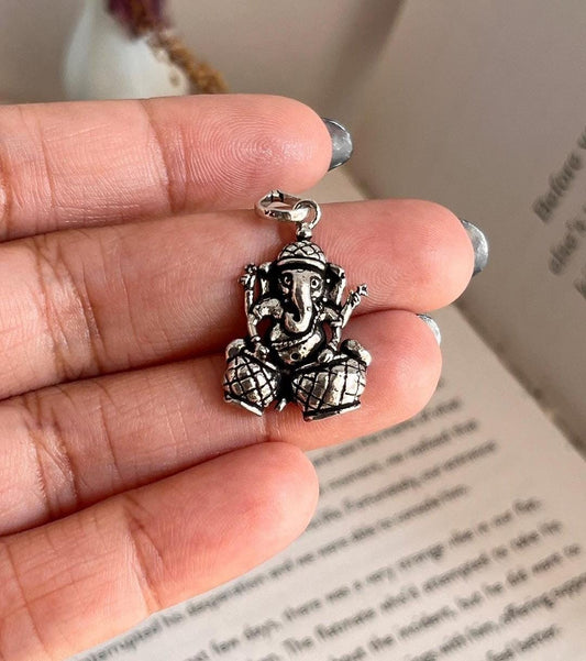 Ganesh With Hand Big 925 Sterling Silver Pendant
