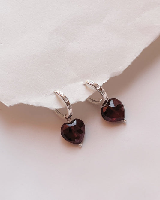 Garnet Heart Sparkling Cz 926 Sterling Silver Huggies/ Hoops