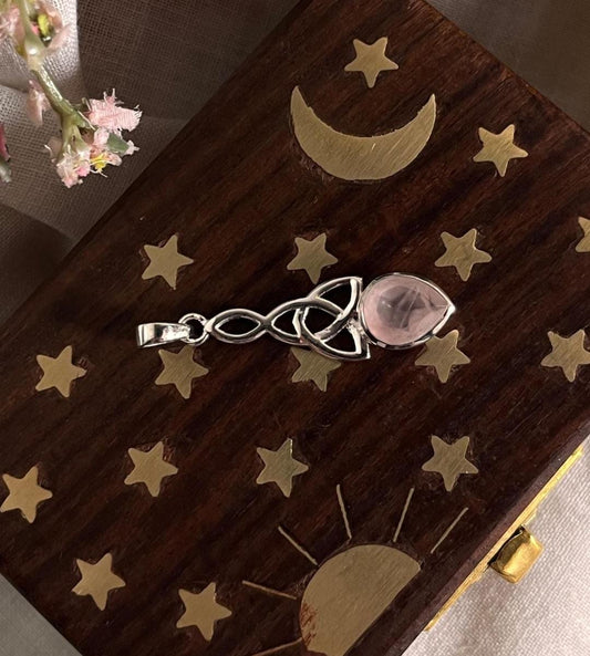 Rose Quartz Trinity Knot 925 Sterling Silver Pendant