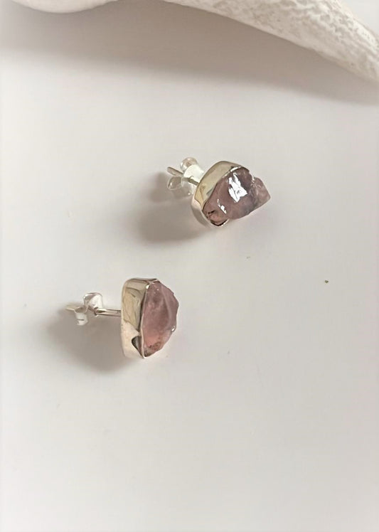 Rose Quartz Raw Uncut Studs 925 Sterling Silver Earrings