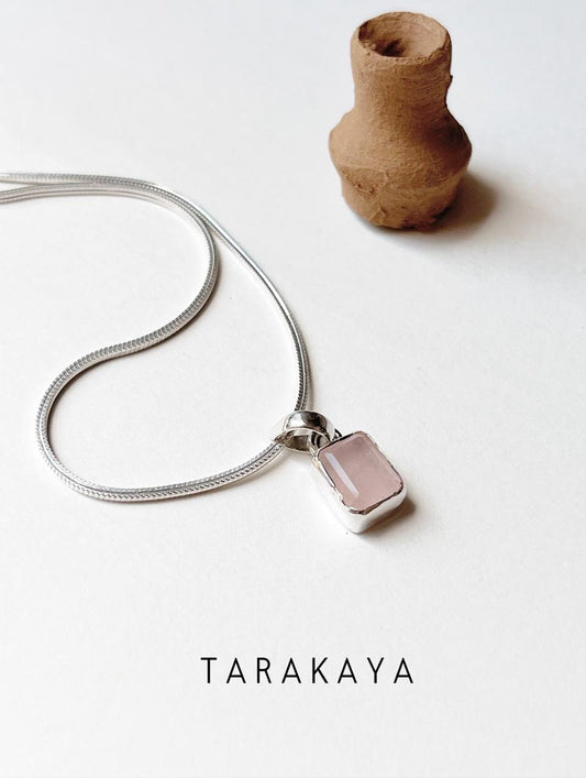 Rose Quartz Rectangle 925 Sterling Silver Unisex Pendant