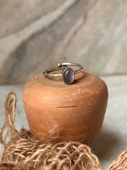 925 Sterling Silver Rose Quartz Oval Boho Ring