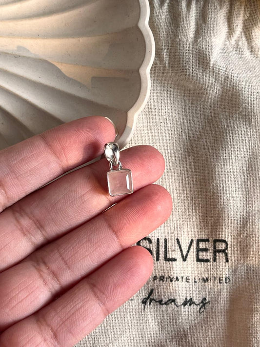 925 Sterling Silver Rose Quartz Square Cut Unisex Pendant