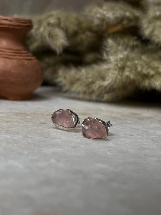 925 Sterling Silver Rose Quartz Raw Uncut Studs Earrings