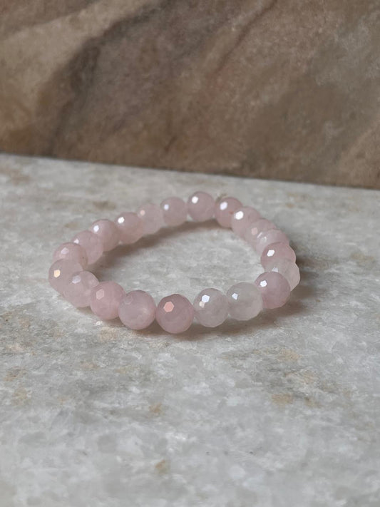 Natural Crystal Rose Quartz Diamond Cut Bracelet 8MM