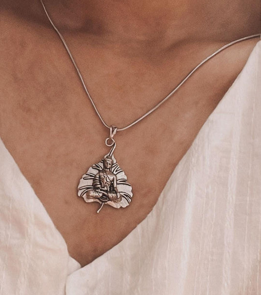 Buddha Peepal Leaf 925 Sterling Silver Pendant