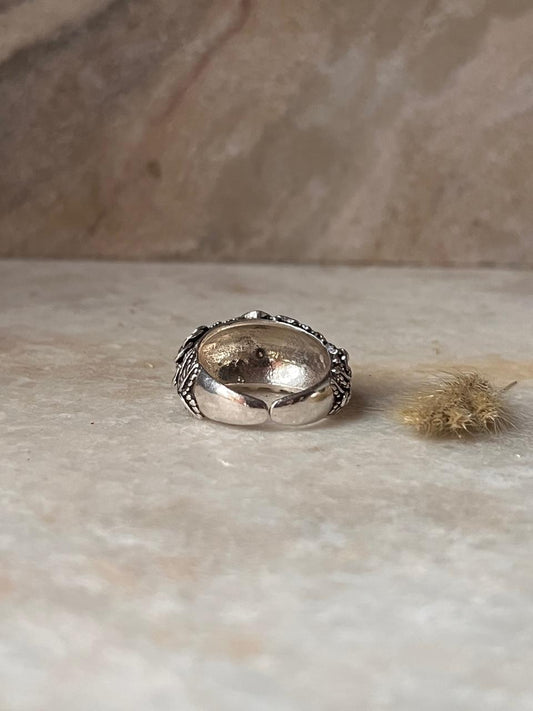 Detailed Garden Motif Boho Adjustable 925 Sterling Silver Ring