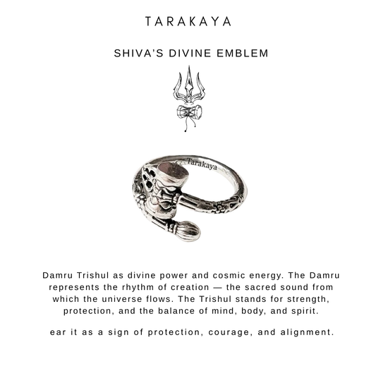Damru Trishul Adjustable 925 Sterling Silver Ring