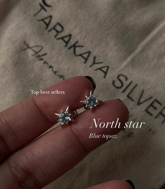 North Star Blue Topaz Studs 925 Sterling Silver Earrings