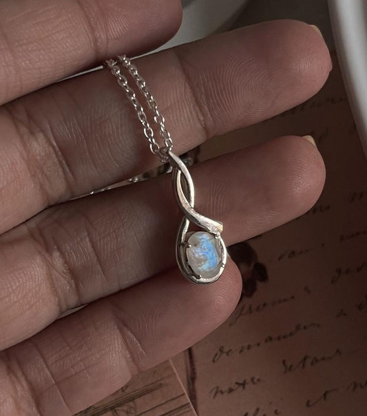 Moonstone Cross Solitaire 925 Sterling Silver Necklace