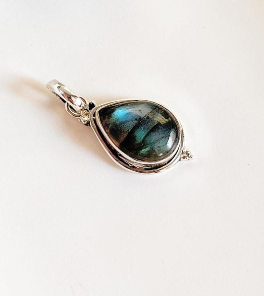 Pear Labradorite Plain 925 Sterling Silver Pendant