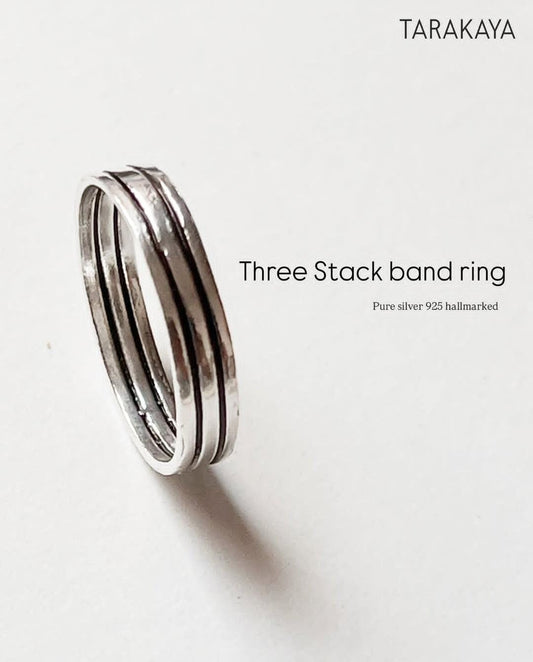 Random Hammered Sleek Stack Band 925 Sterling Silver Ring