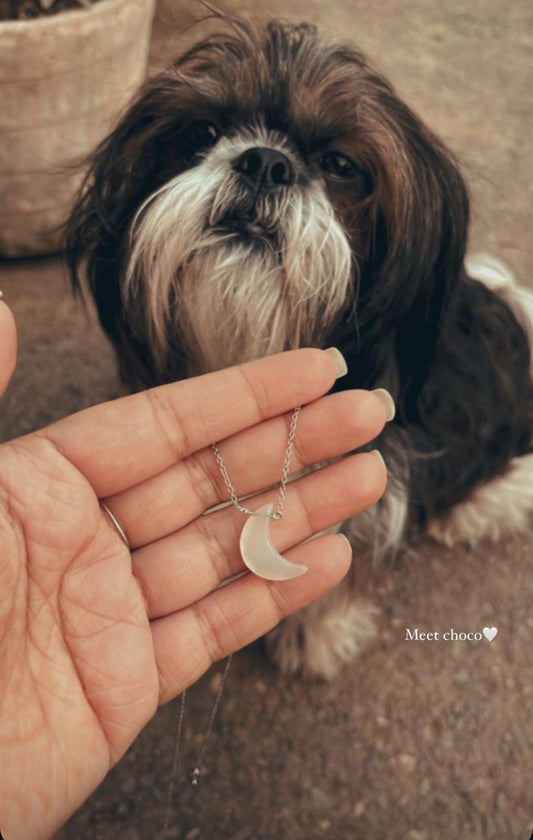 White Moonstone Crescent Moon Crystal 925 Sterling Silver Necklace