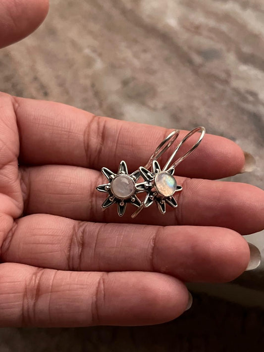 Moonstone Big Sunflower Earrings 925 Sterling Silver Earrings