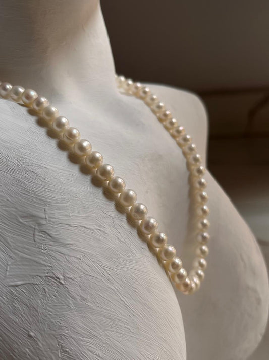Natural Fresh Water Pearls Round 925 Sterling Silver Necklace