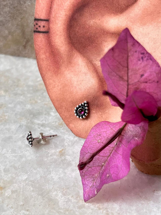 Drop Pink Cz Stone Studs 925 Sterling Silver Earrings