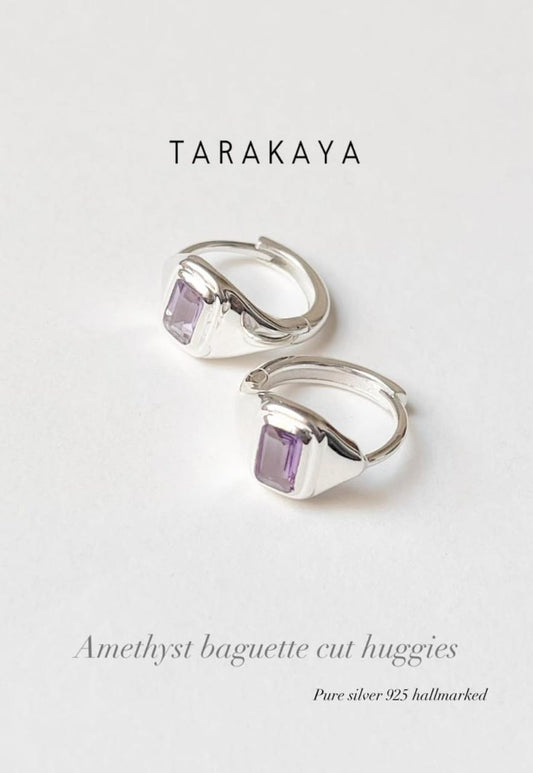 925 Sterling Silver Amethyst Huggies/ Hoops Earrings