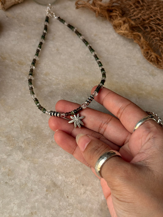 925 Sterling Silver Smokey Quartz, Emerald & Clear Quartz Marijuana Necklace